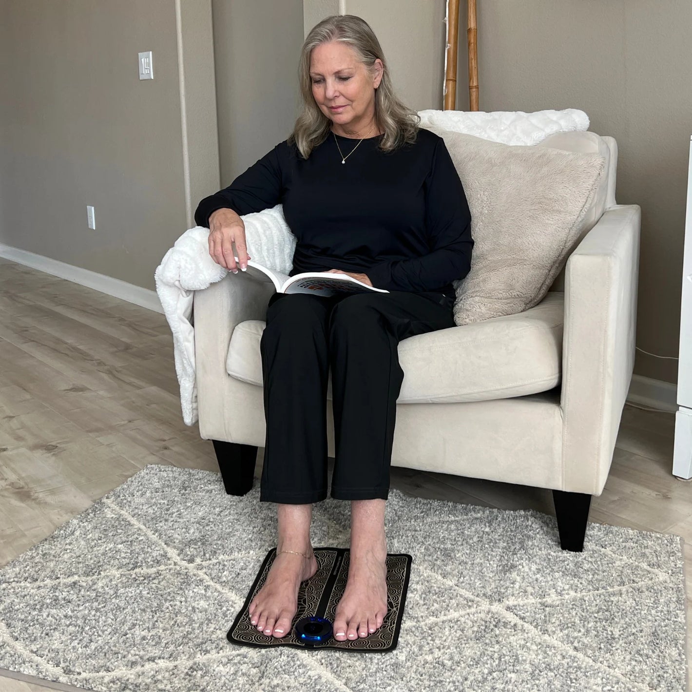 כשאתם מניחים את הרגליים על ה-FootRevive® מבית Medene, המכשיר מתחיל מיד לשלוח פולסים חשמליים מדויקים אל שרירי השוקיים כדי להפעיל אותם ולעודד את זרימת הדם מהחלק התחתון של הגוף חזרה אל הלב.